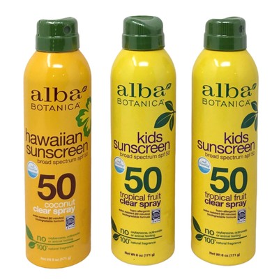 Alba Botanica Hawaiian, Coconut Spray Sunscreen SPF 50, 6 ... from zabiva.com Lowest price ($7), color (multi, clear), weight (170 grams, 23 grams, 20 grams), release date (28 may 2015), brand (alba botanica). Bottle of alba botanica coconut hawaiian clear spray spf 50 sunscreen. 10 best alba sunscreen products of september 2020.